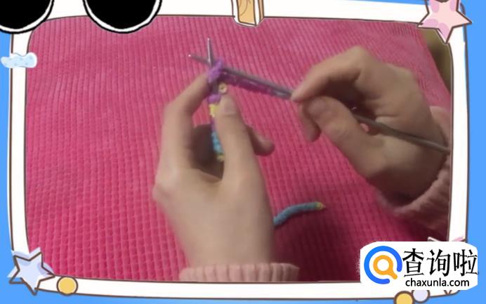 然后右手拿着毛线,绕右手的毛线棒一圈。
