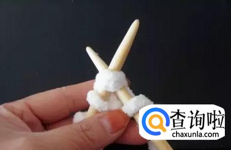 没有起针的毛线棒,穿进起针毛线棒的第一个毛线圈里面,右手的毛线棒要在左手的毛线棒的下面,从里面穿到外面。