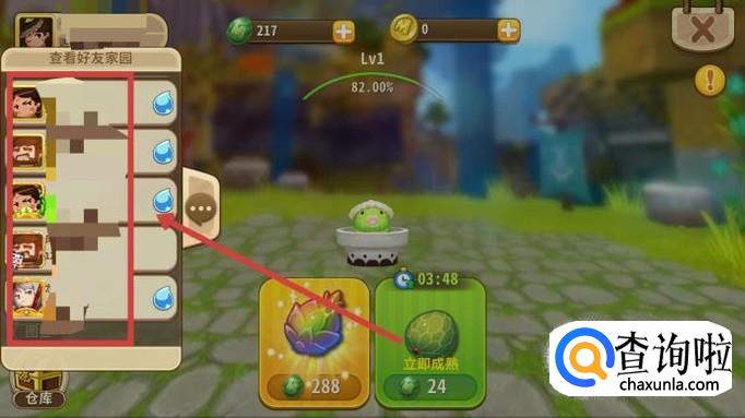 在界面左侧可以找到一个聊天框,点击进去,这里都是你的好友,我们可以进去给他们浇水除虫,这都有可能获得经验值。