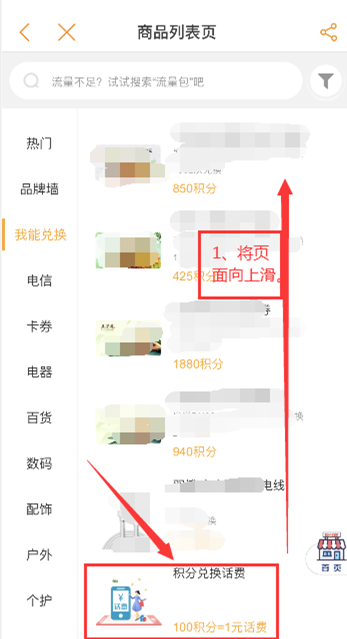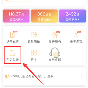 4、滑动页面,拉到最底部,找到并点击“积分兑换话费”。
