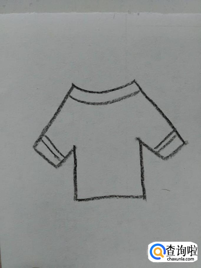 在两只袖子上,分别画两条直线,表示袖子上的花纹,到此,衣服就画完了。