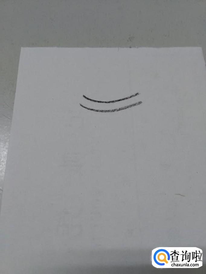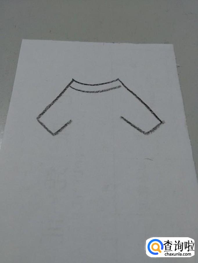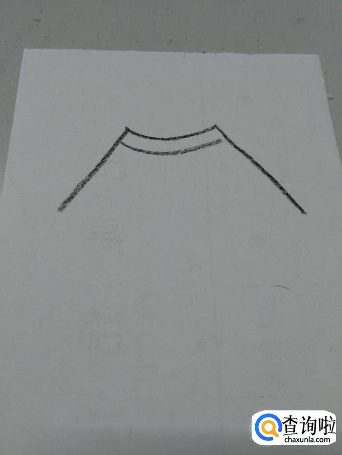 先用笔在纸上画两条弧线,表示衣领。