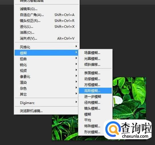 然后选择模糊中的高斯模糊,卢下图所示。