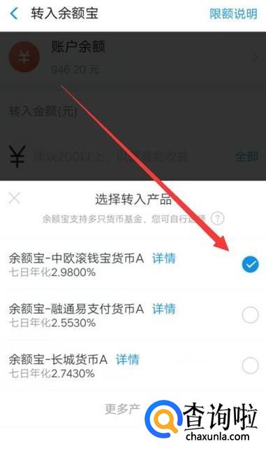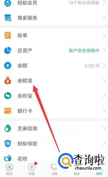 进入之后,点击“余额宝”,进入下一页面,如图所示。