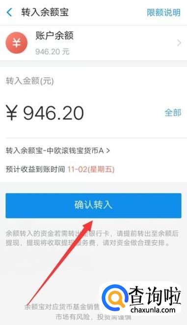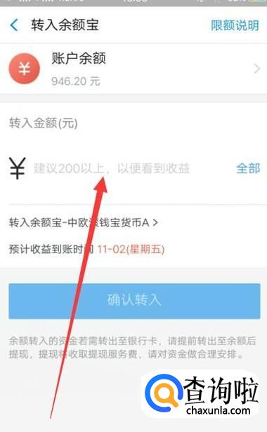 进入之后,点击“转入”,进入下一页面,如图所示。