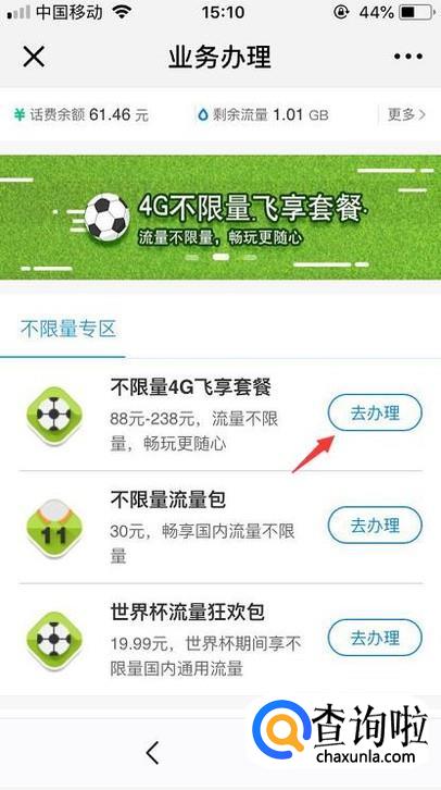 最后进入到业务办理,选择好我们自己想要更改的话费套餐点击右边的去办理即可。