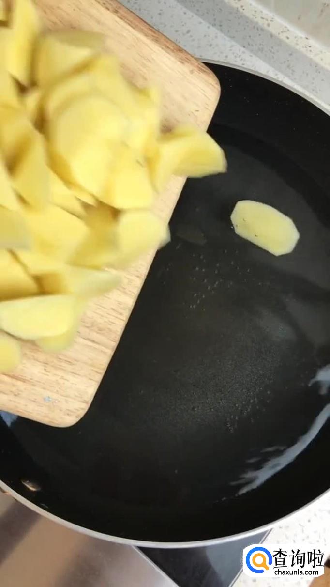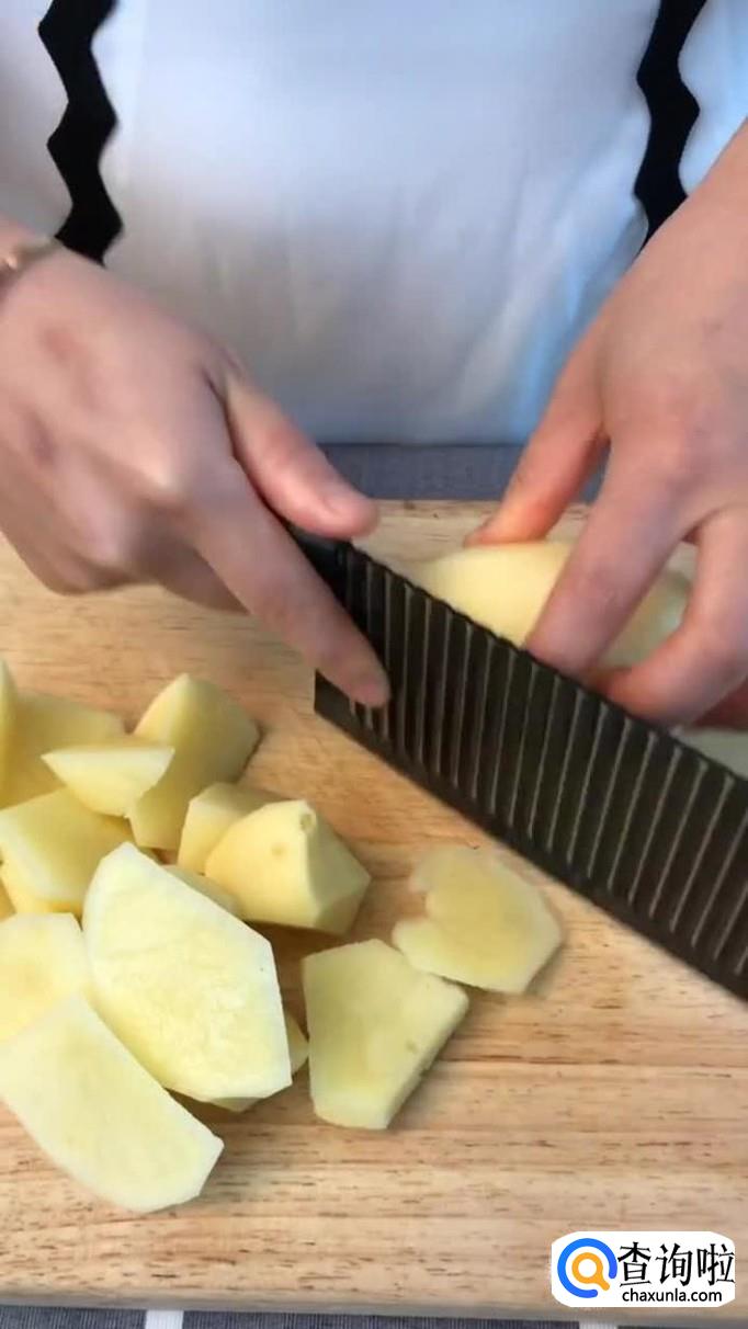 首先把土豆去皮切成块,如下图所示。