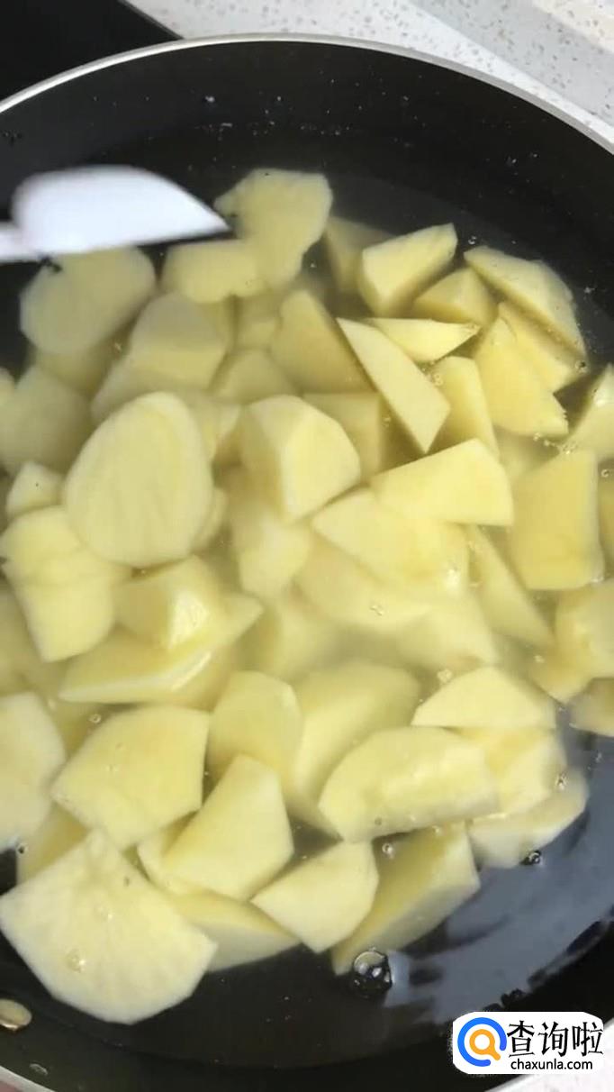 然后把土豆倒入锅中煮十分钟,在煮土豆的时候不要忘记往锅中加入些许的盐。这样做方便土豆入味。