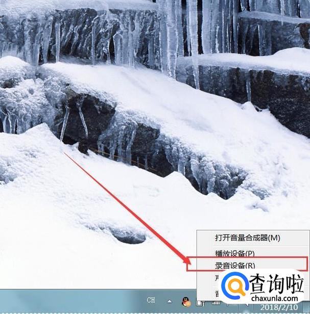 在打开的右键菜单项目中,点击选择“录音设备”选项,即可打开录音设备设置页面。