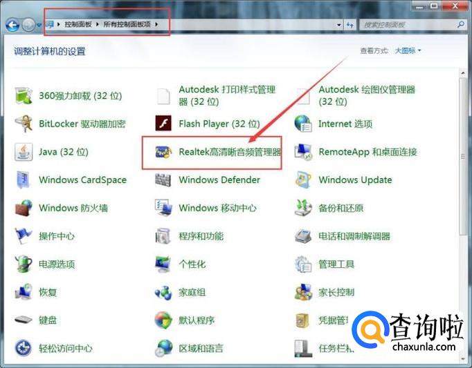 首先,在Win7系统中,如果安装的是Realtek音频设备的话,那么要先进入控制面板-Realtek高清晰音频管理器菜单项。