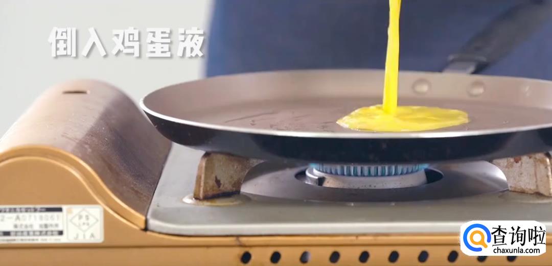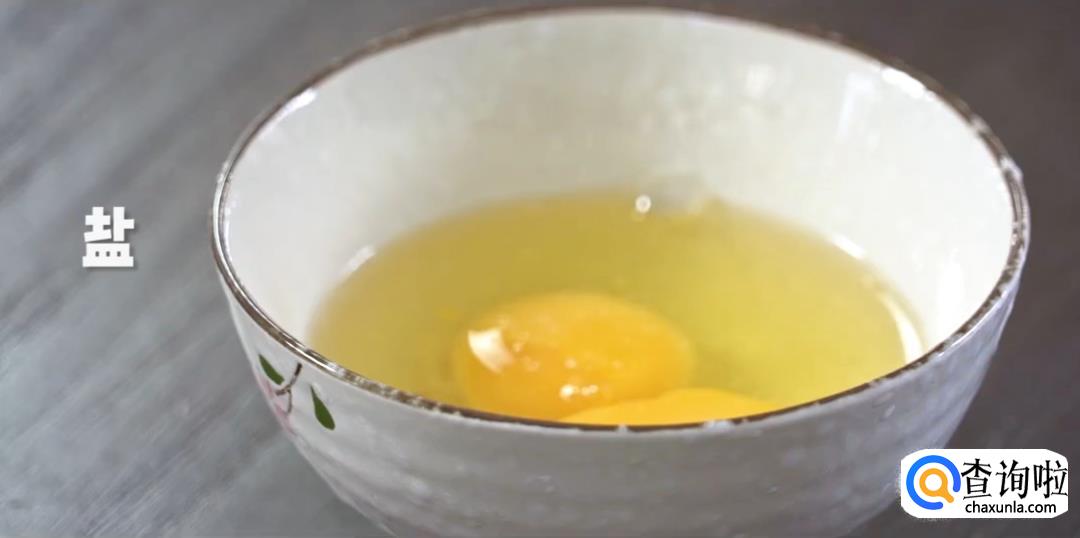 鸡蛋加盐,搅拌成蛋液后倒入平底锅中,小火煎成蛋饼。
