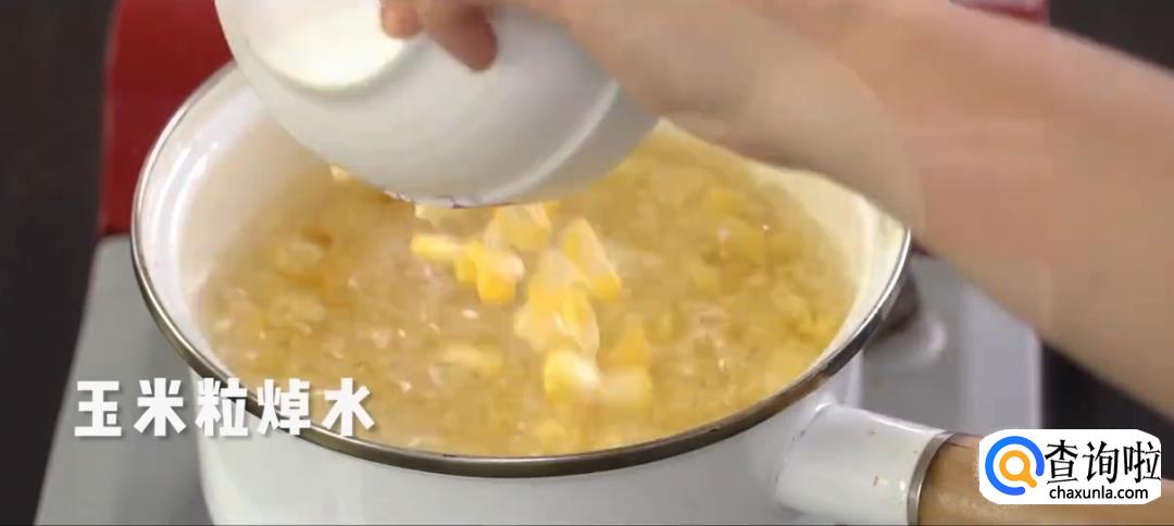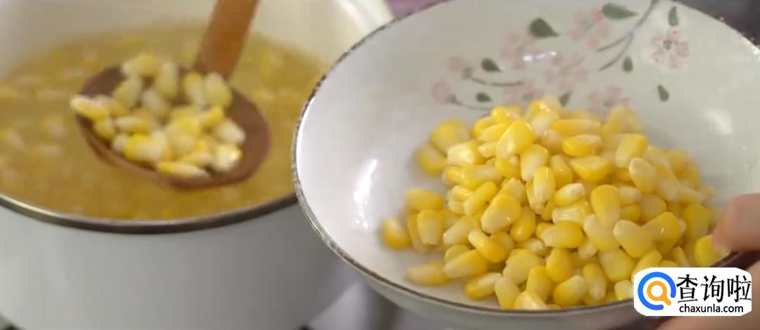 玉米粒下沸水后捞出。