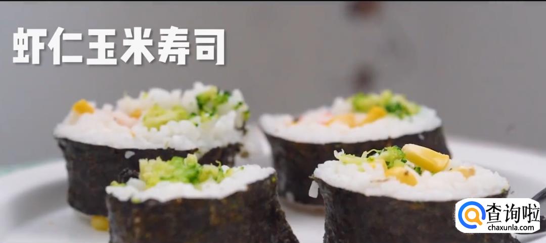 鸡蛋,米饭,寿司醋,白糖,基围虾,西蓝花,胡萝卜,玉米粒,海苔片,肉松,鸡肉