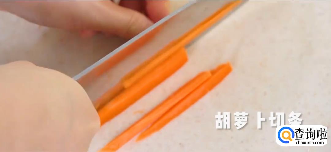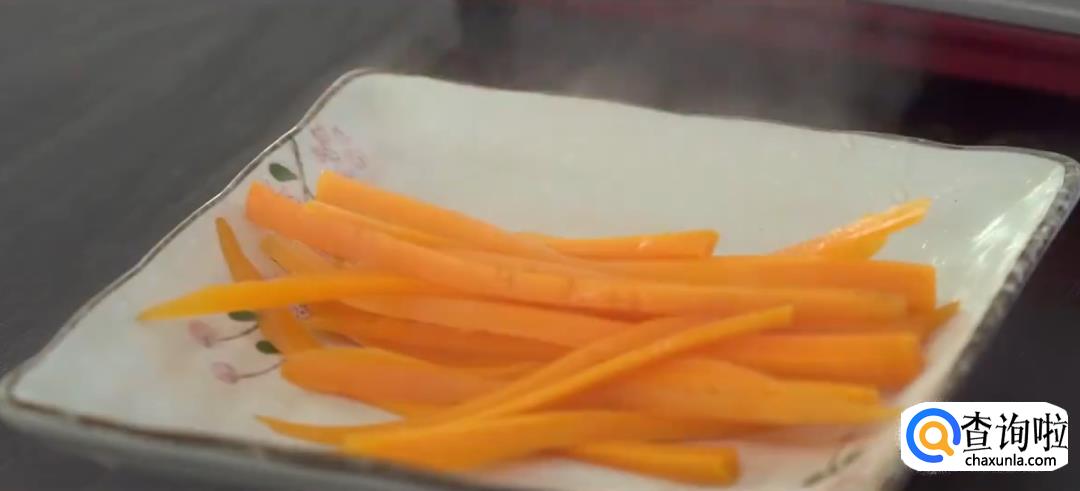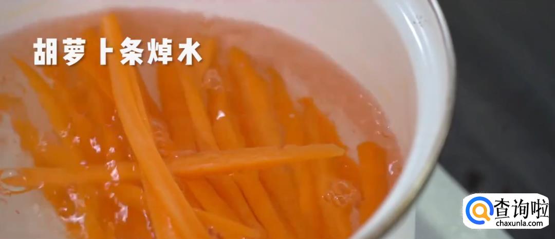 胡萝卜切丝,下沸水焯水后捞出。