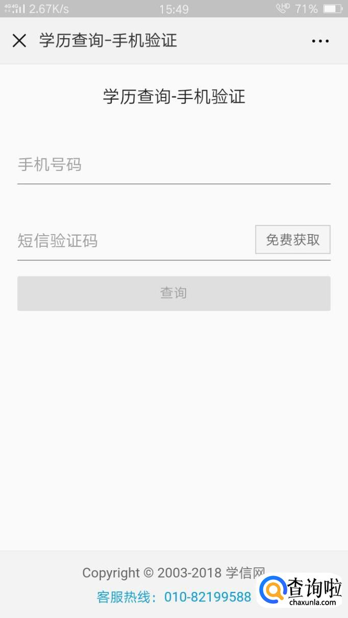 输入自己的手机号码,之后填入收到的验证码,点击查询即可。