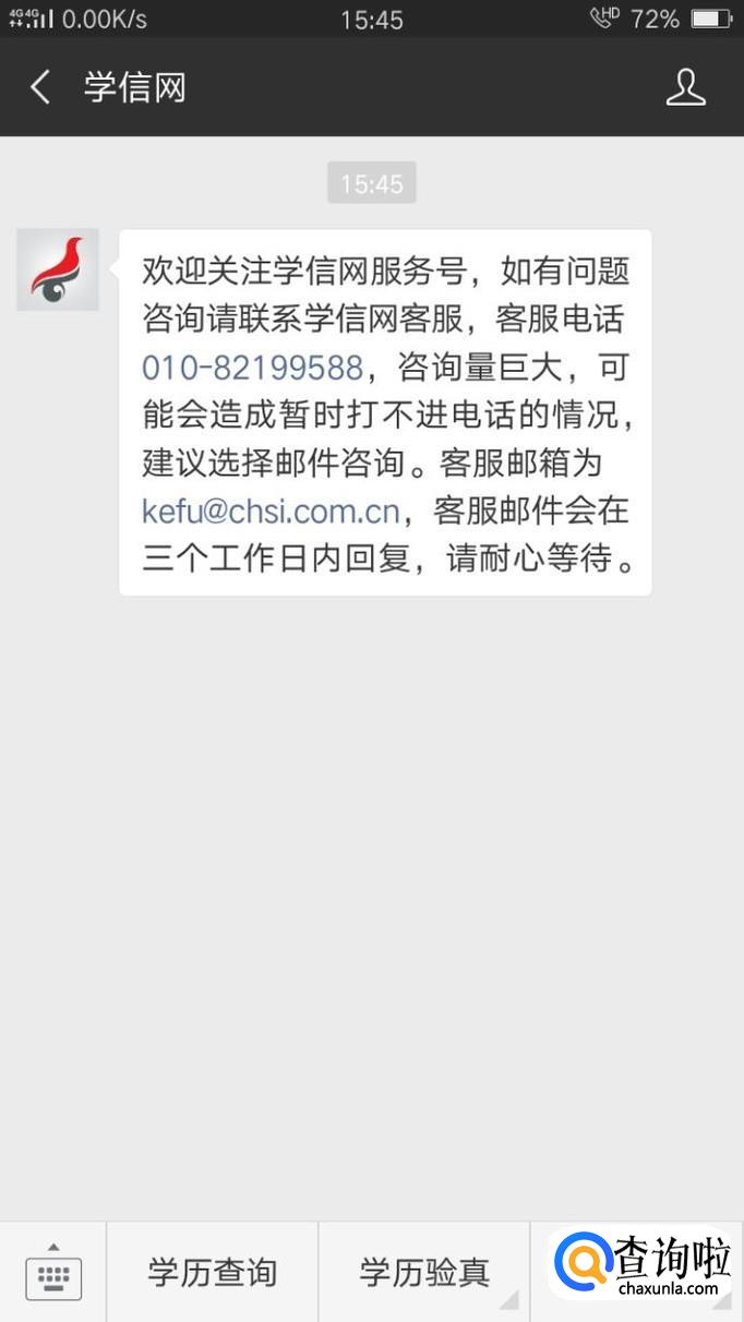 打开微信,搜索“学信网”并关注其公众号。
