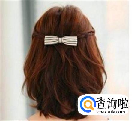 脑门两侧各自留出一缕头发,分别编成麻花辫,然后直接绕过脑袋聚拢在脑后,用橡皮筋绑起来,随便一个什么发饰都可以了,非常的俏丽可爱。