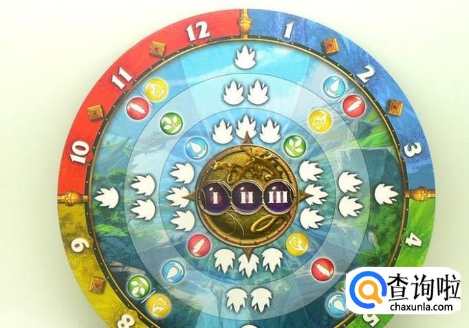在游戏中,有一个四季转盘,最外圈,是一圈12格的四季轨道,它们就如同其他游戏的回合数一样,每三个格代表了一个季节,每一个季节需要使用不同的骰子哦!