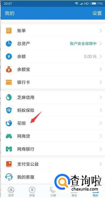 首先想要开通花呗我们就先打开支付宝登录账号,在我的页面里进入到花呗的功能。