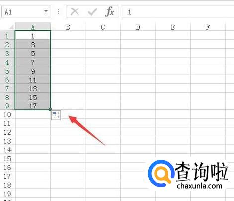 将以上单元格内的数值改为奇数,然后选择在其下面出现“+”如图所示: