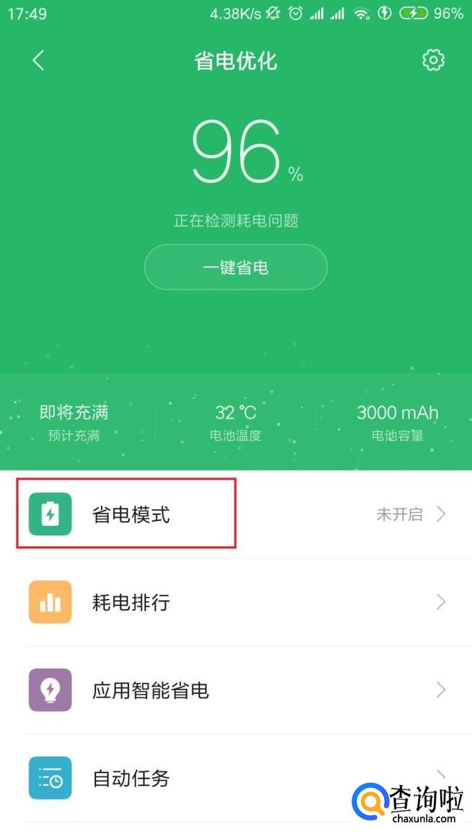 手机上如何开启省电模式呢?请看下面的操作步骤。