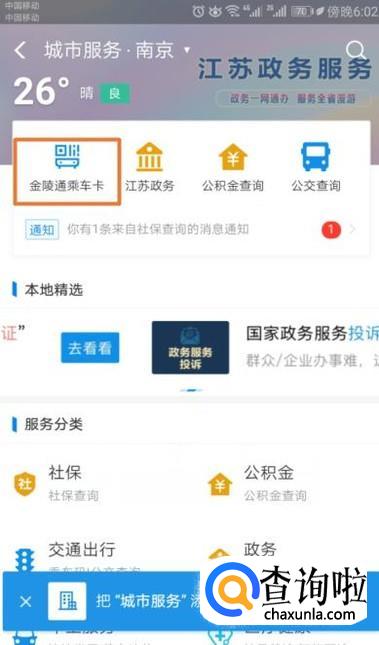 然后我们点击金陵通乘车卡;