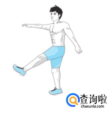 将一条腿向高处抬起,为了保持的身体平衡手臂也要相应的抬高,大腿与腹部最好为90°的夹角,抬腿的同时要注意用力收腹,两腿轮流进行。