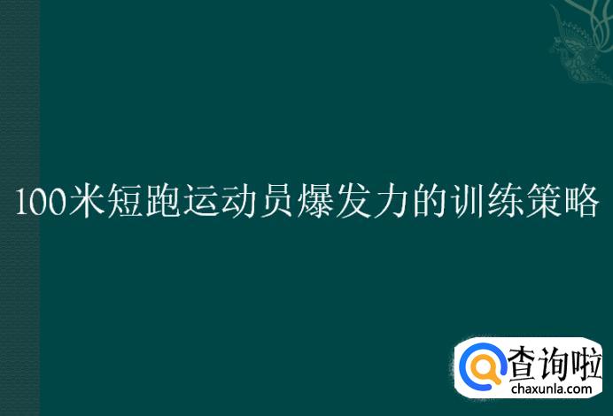 100米短跑,主要是速度的角逐。要在100米中取得好的成绩,那在平时的训练以及赛场的发挥都是需要策略的。赛场-分钟,赛下十年功。努力的付出,辛苦的训练总是要在成绩的获得取得上看出。不然辛苦也就变成了流水,100米短跑不仅要 在训练中有策略,同时也是一场心理战。 小编就将来聊聊关于100米短跑爆发力的训练策略。