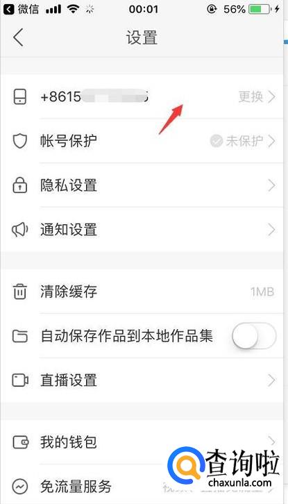 接着我们就会看到设置功能的第一个就是快手当前绑定的手机号,点击进去。