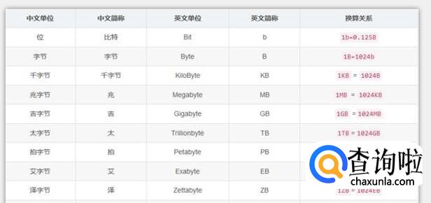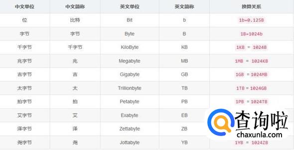 英文单位:Byte,英文简称:B;中文单位:字节,中文简称:字节。