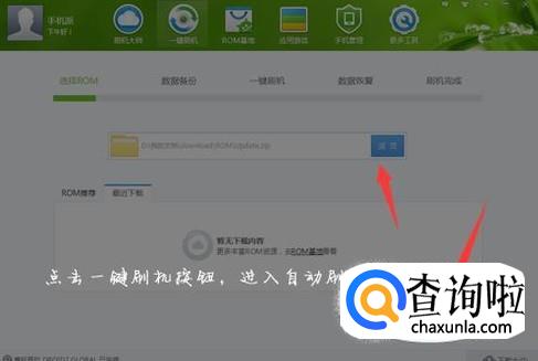 点击【浏览】按钮,选择事先下载的 ROM,然后点击【一键刷机】按钮