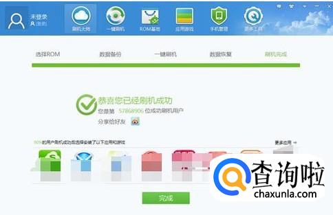 然后手机会再次重启,软件界面显示刷机完成。至此刷机就完成啦,四不四很简单呢。