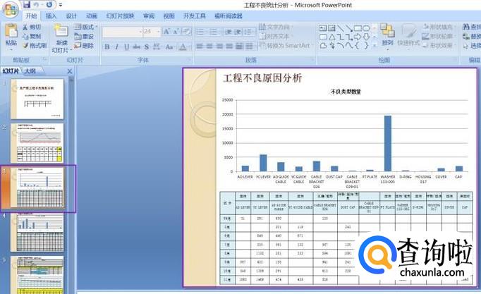 然后选中左边幻灯片栏中的第3张幻灯片,也就是不良原因分析的那个幻灯片;