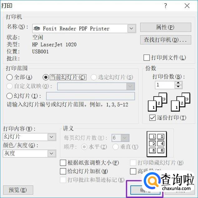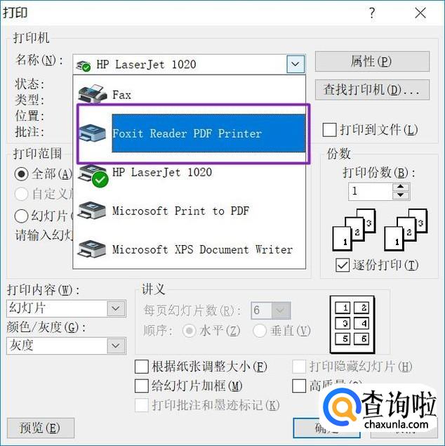 选择Foxit Reader PDF Printer这个打印机;