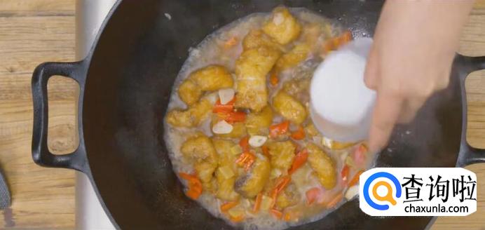这道菜的关键点是要先把鱼块过油炸到外酥里嫩,之后炒的时候要先爆香小料,然后不会迅速地先把鱼块下入,而是先用高汤调好味,再下入鱼块,这样可以避免鱼块再锅里炖煮太久,变的软烂。