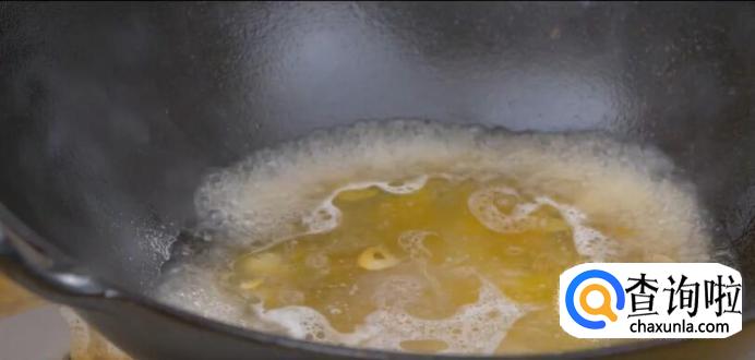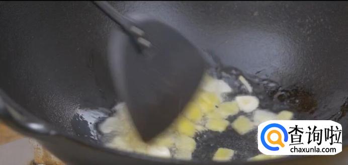 另起锅,倒少许油,放入蒜片、姜片,煸出香味。