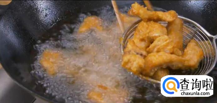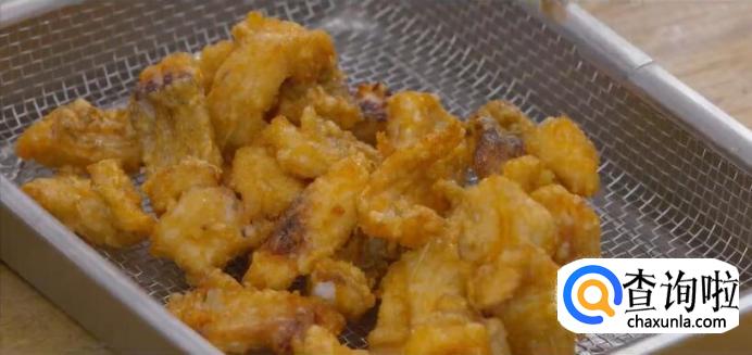 起油锅,油温烧至七成热左右,下鱼块炸至金黄。