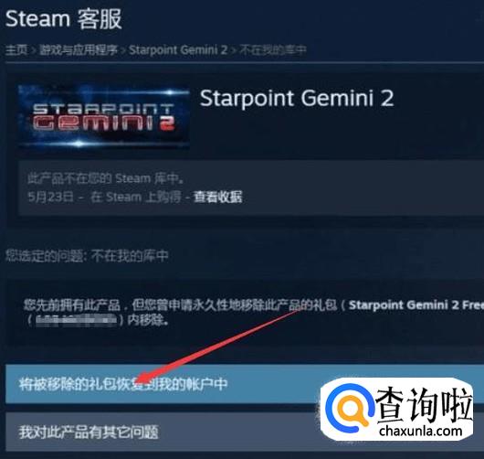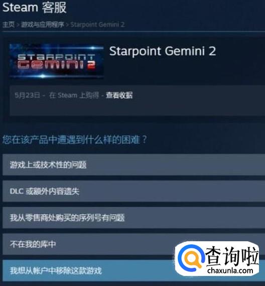 首先打开steam客服,上面可以找到想要移除的游戏,也可以直接在最下面输入游戏的名字,按回车搜索。