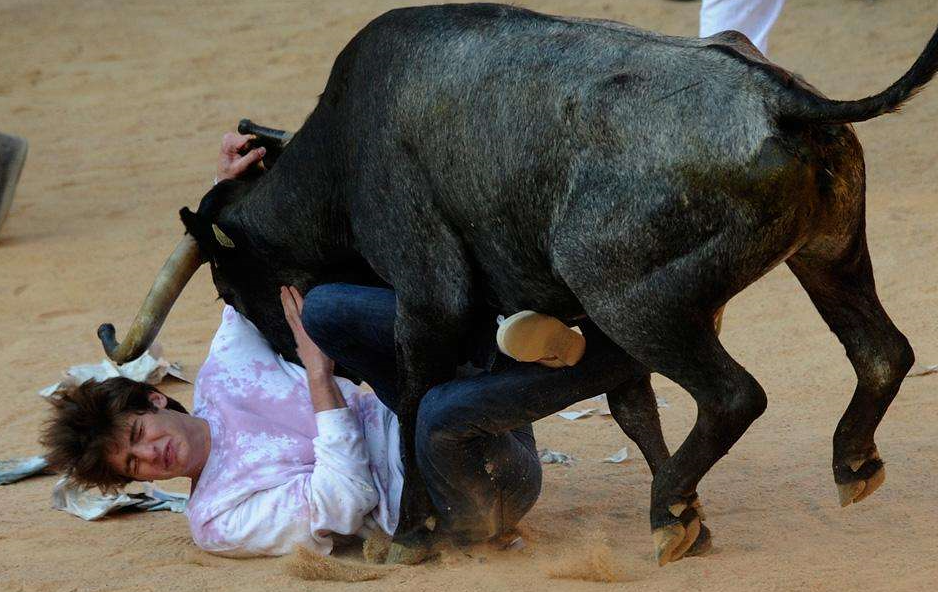斗牛表演是精彩的,也是残忍的。人对牛残忍,牛对人也残忍。西班牙全国每年要杀死大约5万头牛,300年斗牛史中,125名成名的主斗牛士中有40多位死于牛角之下。