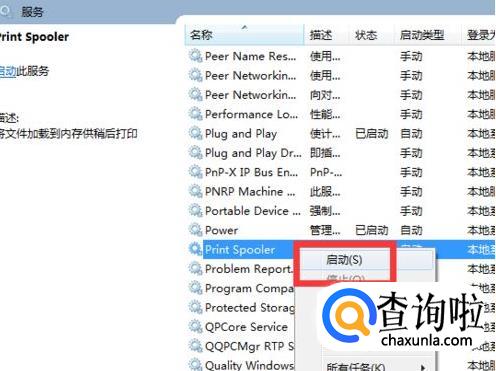 找到Print Spooler 服务选项,点击变成启动状态即可。