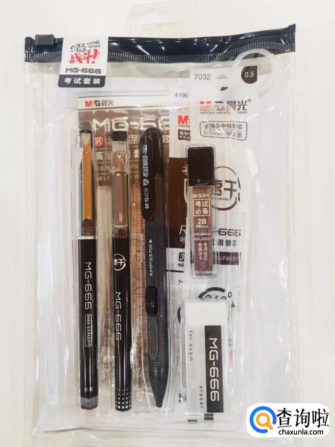 带好考试用具,2B铅笔,0.5mm签字笔,最好都多备几只,以防万一。
