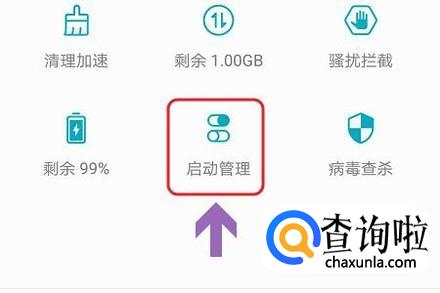 在功能区我们可以看到有一项“启动管理”,点击之后即可看到手机里所有应用列表,如果应用的右侧开关是打开状态,那就说明它是开机自启的,如下图;