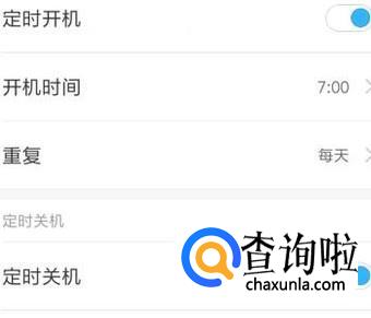 转到设置页面,在底部这里就看到“定时开关机”的设置选项。点一下“定时开关机”转到另一个页面,在这里,我们把“定时开机”与“定时关机”都开启。然后,再按自己的实际需要来设置定时开关机时间。
