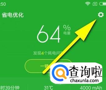 在这个页面中再点“省电优化”;转到另一个页面,在页面的右上角点齿轮图标。