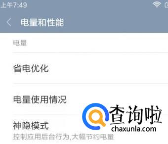转到设置页面,找到“电量和性能”这一项,再点一下,转到另一个页面。