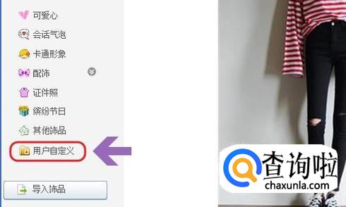 最后点击软件右上角的“新建”,然后新建一个画布,在画布中点击鼠标右键将原先的照片插入进来,适当的拖动改变大小;接着点击“饰品”页面左侧的“用户自定义”;