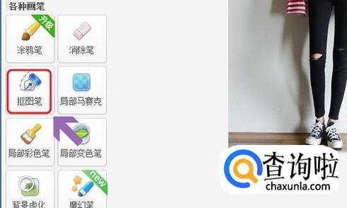 添加之后点击左侧工具栏的“抠图笔”,如图一,然后在弹出的抠图样式对话框选择第三种“形状抠图”;