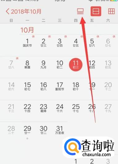 进入之后,点击图示位置,切换日历的模式,如图所示。