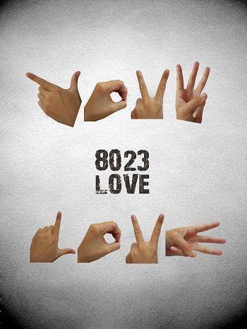 8023代表LOVE,这是爱情物语书中的一个经典数字手语,用手比划即可得知:“8”,把左手大拇指和食指叉开,竖放 代表“L”; “0”,代表“O”; “2”,叉开食指和中指,代表“V”; “3”,叉开中指、无名指、小拇指,横放 代表“E”,合起来就是“LOVE”。