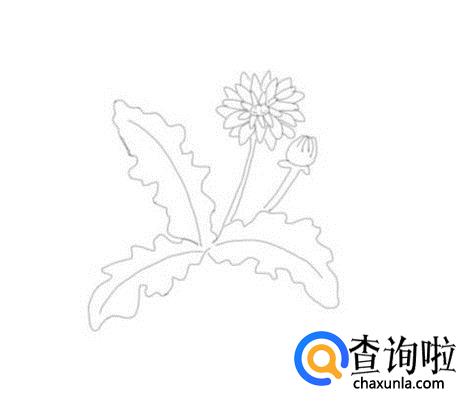 在叶子的基础上再画出一朵开放的蒲公英的花朵,如图所示: